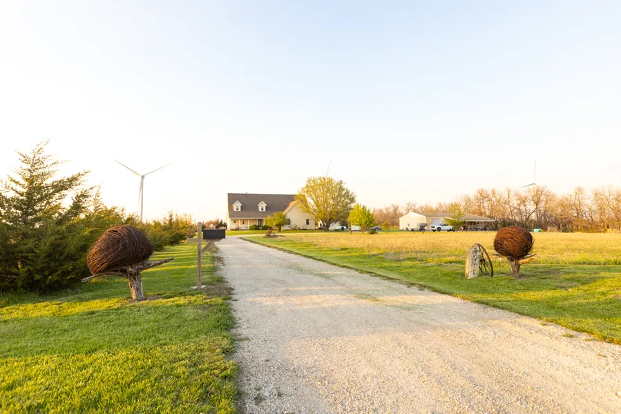 Nestled in the peaceful countryside of Coffey County, Kansas, this impeccably maintained country estate exudes charm and elegance. With a spacious 4,200 square foot layout, this well-crafted home offers four bedrooms and three and a half baths, for plenty of space for your whole family. Step into an open floor plan kitchen, complete with a central island and attached breakfast dining area bathed in natural light, courtesy of surrounding windows. The kitchen features a unique corner sink, providing picturesque views of the backyard oasis. The first-level master bedroom offers a very nice en suite bathroom, walk-in closet, and walk-out to the back porch, perfect for enjoying morning coffee or sunsets. Gather with loved ones in the family room, anchored by a cozy fireplace and vaulted ceilings, seamlessly flowing into the attached dining room. Upstairs, a spacious secondary family room serves as a versatile space, perfect for a hangout area for kids, centered by three additional bedrooms and a full bathroom on the upstairs level.