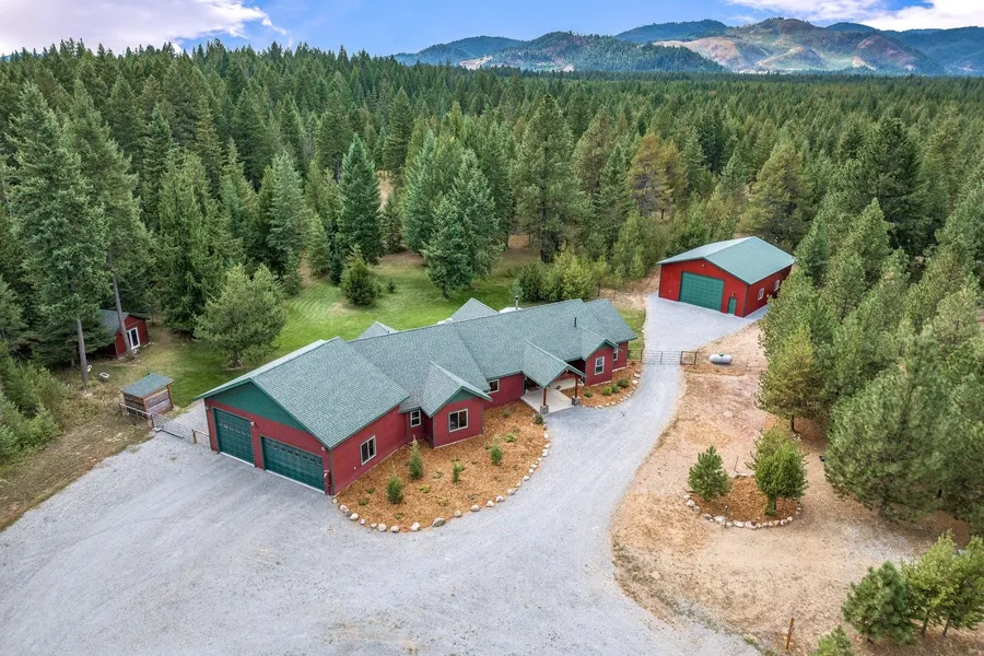 Nestled on 5.1 serene acres at the end of a private cul-de-sac, this 3-bedroom, 2-bath custom home blends comfort, function, and North Idaho charm. The open-concept design showcases vaulted ceilings with beams, a wood-burning fireplace, and knotty alder doors and trim. The kitchen is a true centerpiece with abundant soft-close cabinetry, granite countertops, a 9-ft island, stainless appliances, stylish tile backsplash, and a spacious walk-in pantry. The luxurious primary suite offers private deck access, a spa-like bath with double vanities and custom-tiled walk-in shower, plus a pass-through walk-in closet leading to the oversized laundry room. Step outside to a manicured, fully fenced yard with patios, open deck, firepit, and jetted hot tub. Outbuildings include a finished 3-car garage, 36'x44' insulated workshop, and a charming 14'x16' she shed. Trails wind through the timbered acreag...