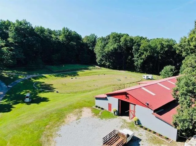 Private Equestrian Estate Bordering the City Limits of Carrollton! The privacy and convenience of this location are a rare find.Custom one-owner ranch home with finished terrace level. Lower level is complete with teen/in-law suite, den, kitchenette with bar seating and walk-out covered porch. Open concept floor plan and walk-in food/prep pantry is an entertainer's dream. Large chef's kitchen with stainless steel appliances, oversized island/bar, FP and sitting area make this the perfect place to gather for family meals or serve friends buffet style. Charming features include large sunroom with lake and estate views, living/dining room with stone fireplace, vaulted ceilings and exposed beams. Main level owner's suite offers the full package with interior jacuzzi overlooking lake, sitting area, oversized closet, and office. Hardwoods and wildlife surround this 60 acre horse lover's playgr...