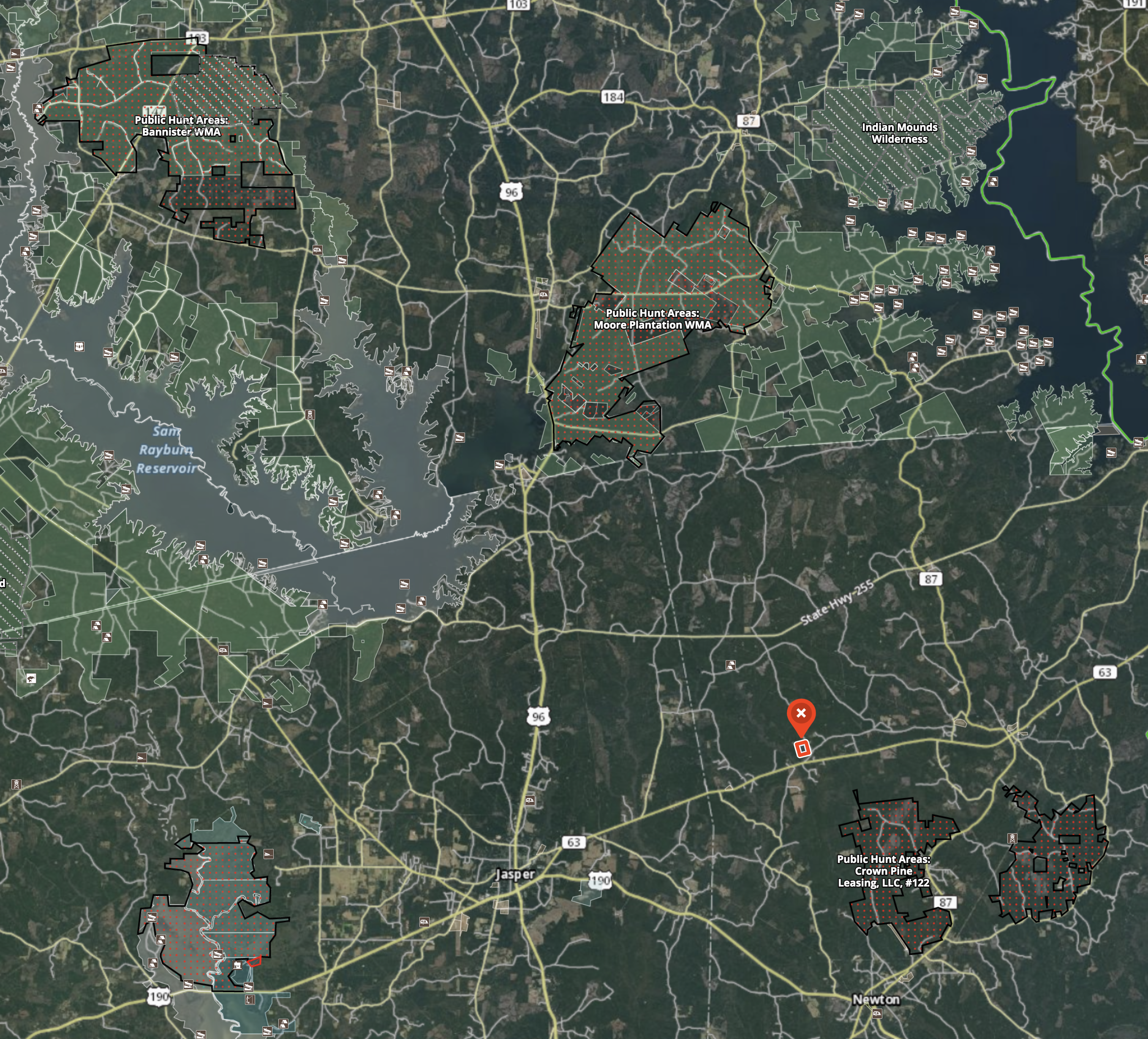 Located within 20 minutes of Lake Sam Rayburn and Toledo Bend, this 107 Acre property is in a very secluded and beautiful location.