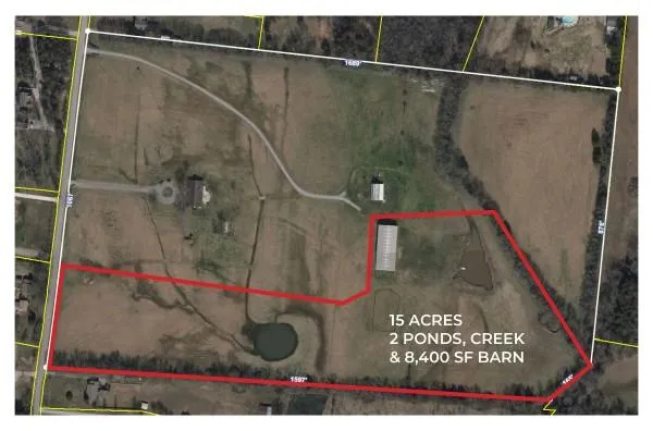 This beautiful Franklin property feels like it's in the country but is minutes to shopping, entertainment and restaurant's. Looking for an Equestrian Estate? Multigenerational Home Estate? A Family Compound? Luxury development? Investment Opportunity? This picturesque 15 acres comes with a 8,400 sq. ft. barn , 2 ponds, creek and 3 approved soil sites. This drawing is preliminary, Seller to complete survey with actual measurements. A new underground power line will be run by the Seller to the existing home to remove the overhead lines, Seller to detach the power line to the large barn, Seller to do Survey work to create a 15 acre parcel to include 2 ponds and the large barn.