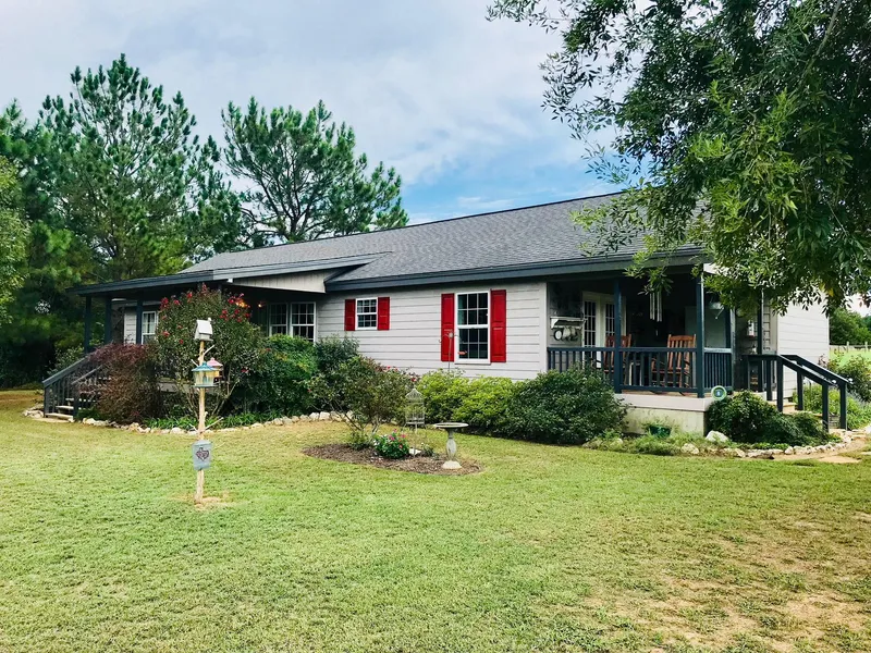 Get ready to be impressed! From the moment you pull in the drive, you will love the uniform trees lining both sides of the driveway. The three-bedroom, two bath modular home sits on a slab and its in perfect condition. The large open living/dining area makes for perfect family gatherings. There is a fireplace in the living area, a great kitchen with lots of cabinets, breakfast area, and dining area. The private master bath has a walk-in closet, bath with nice shower, and double sinks. There is an office off the master that could work great for a nursery or den. The two guest bedrooms share a hall bath. The laundry has good storage and is neatly organized. The home has a large front porch and a side porch that both look out over the pretty landscaping. The large two-car carport with workshop, two barns, and potting shed make for plenty of storage! The lush pasture is fenced for cattle or ...