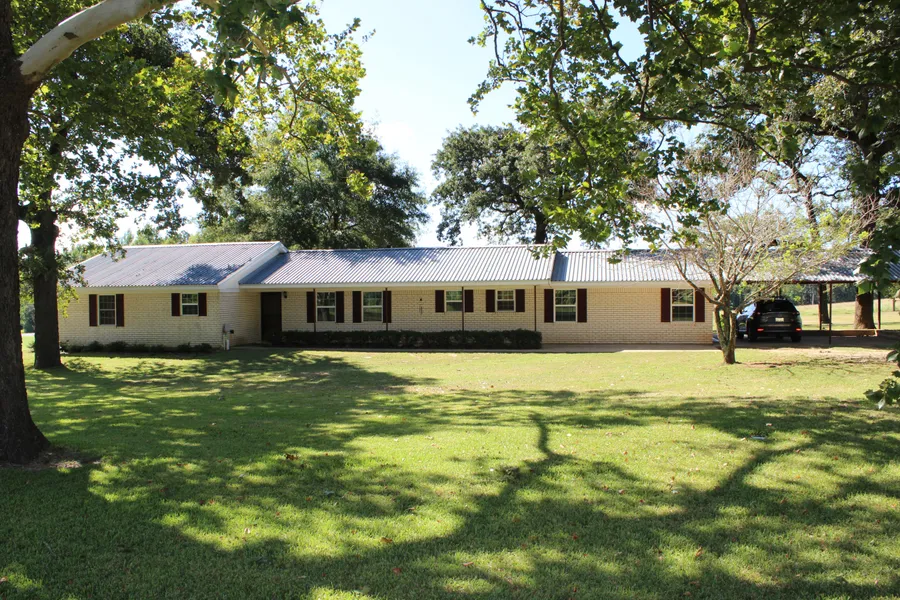 Located in the heart of Grapeland, Texas, sits this white brick farm-style home on a pretty tree-shaded .965-acre lot. This three bedroom, two bathroom has been lovingly updated and offers plenty of room for the whole family. The home has gorgeous new windows that bring the outside in, pretty flooring throughout, a metal roof, two hot-water heaters with one being on-demand, and a camera security system. The spacious living room has a brick fireplace with gas logs, perfect for those chilly East Texas nights. The eat-in kitchen has great countertop and cabinet space, gas cooktop, and nice appliances. The huge laundry room/mudroom has tons of cabinet space for storage, a farmhouse sink, and access to the 2-car carport. The three bedrooms are spacious with good closet space, and the study could be used as a fourth bedroom, if needed. Outdoors, you will find a large metal shop with 3 overhead...