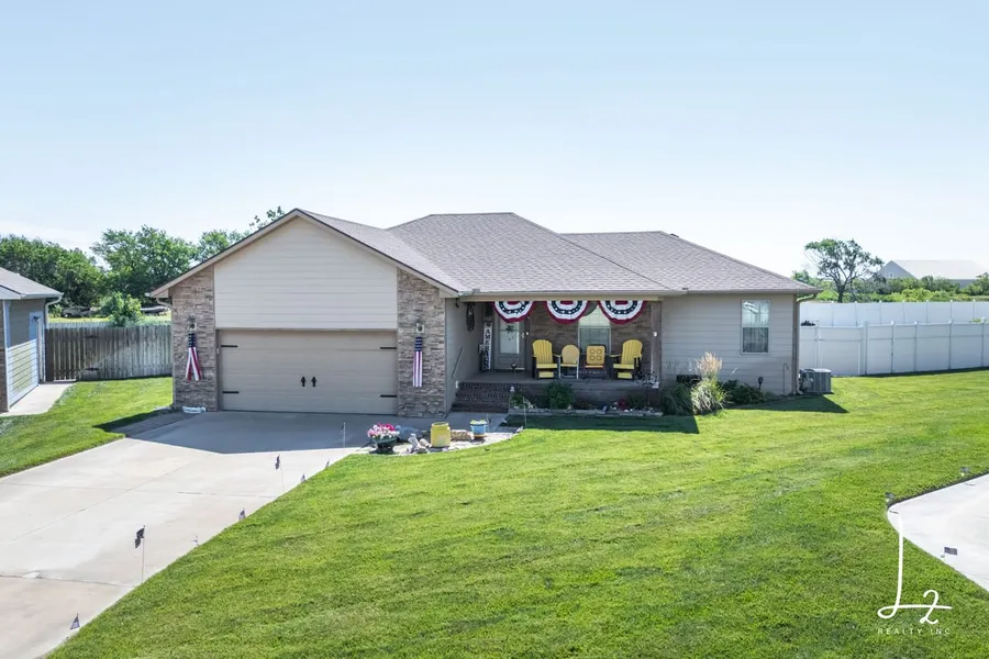 Welcome to 11 Savannah Dr in South Hutchinson a well-cared-for home nestled at the end of a cul-de-sac in a close-knit neighborhood known for its fun community events, including a big 4th of July celebration. Built in 2010, this 2-bedroom, 2-bath home offers 1,397 square feet of stylish main-level living, with an additional 1,397 square feet in the unfinished basement, giving you room to grow into a 4-bedroom, 3-bath layout if desired.