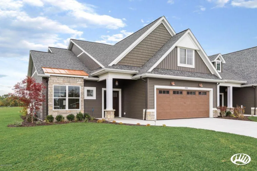 Great Laketown location just 5 miles from beaches and downtown Holland. Captivating Riviera floorplan w/ 2 bedroom, 2.5 bath, features high end finishes, zero step lifestyle and is located on a pond! Home has high ceilings and open concept design. Kitchen features granite countertops, large island, tile backsplash, walk-in pantry, white painted cabinets & stainless steel appliances. Main flr living offers cozy fireplace w/tile surround, 10' coffered ceiling, laundry room w/ folding counter, plus a Four Season Room w/cathedral ceiling overlooking pond. Master suite features a zero entry custom tile shower, tile floors, dual vanities & melamine closet shelving. Additional living space with above garage bonus room-340sqft, storage closet, &full bath. Fin 2 stall garage w/large 18' door.
