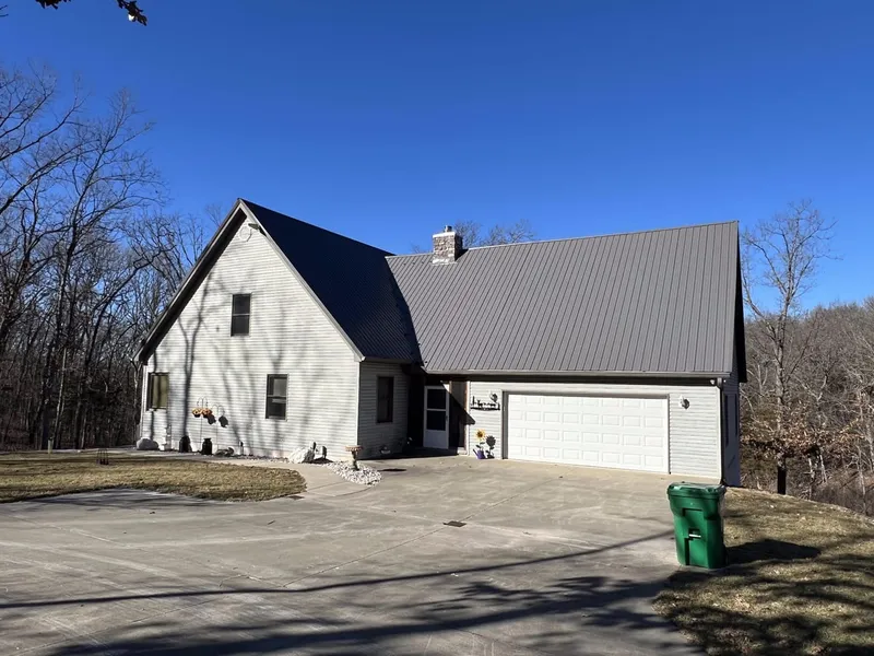 This beautiful Polk County home can be your own private retreat! Just off the county road and down a private lane you will love this 4292 SF home and huge garage/shop surrounded by 70+ acres of timberland! The home is 4 bedroom 3 bath 2 car oversized garage. The main living area is a large great room with wood burning fireplace! Additional features include an open kitchen with stainless steel appliances, and a laundry room with washer and dryer included! Screened in porches and patio surround the home on two sides! The walkout basement includes a huge storage area with heat/air, and a pellet stove, a large soundproof media room, and much more! The detached insulated garage/shop is 3200 SF with 5 overhead garage doors with openers! The acreage included is mostly timber with mature trees, abundant wildlife, and ATV trails throughout. Several deer stands in proven locations will stay with the property! Just behind the home is a SPRING FED pond that is a favorite gathering place for the deer, turkey, and more! This is a prime location just minutes from Bolivar or Pomme de Terre Lake. Come out and see how nice country living can be!