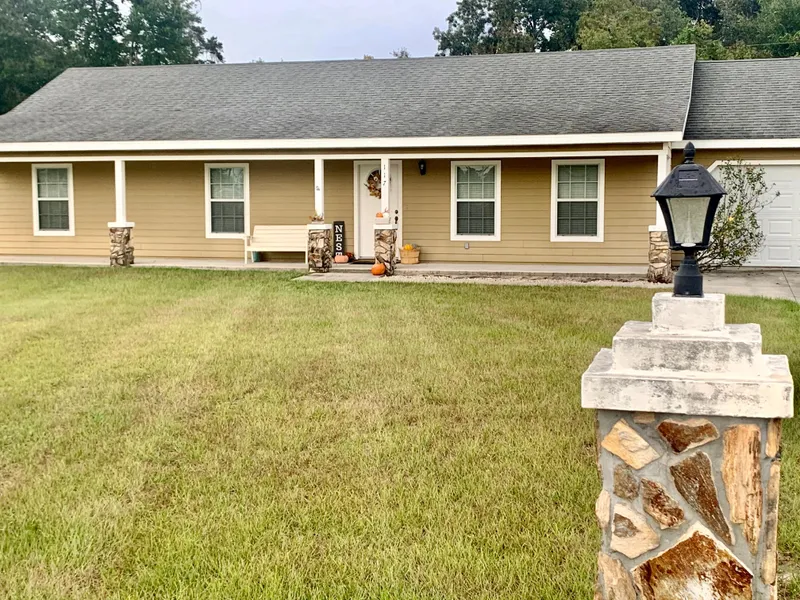 Looking for a beautiful home in a nice neighborhood? You've just found it! From the curbside appeal in the front to the tasteful back fence and gate, this 2009 3/2 home on one-half acre may be just perfect for you! As you make your way from the driveway you will enjoy the front porch entrance that you can decorate to your heart's content! Enter the front door and you immediately sense the coziness of this well maintained home. The spacious kitchen allows for plenty of room preparing meals and you can have a back yard view as you enjoy dinner. Notice that the French doors lead directly on to the back porch which happens to be 25 feet in length! The master bedroom suite was thoughtfully designed with the bathroom located privately off from the bedroom. One of the bedrooms currently serves as an office but the desk is not attached to the walls making for flawless removal. The laundr...