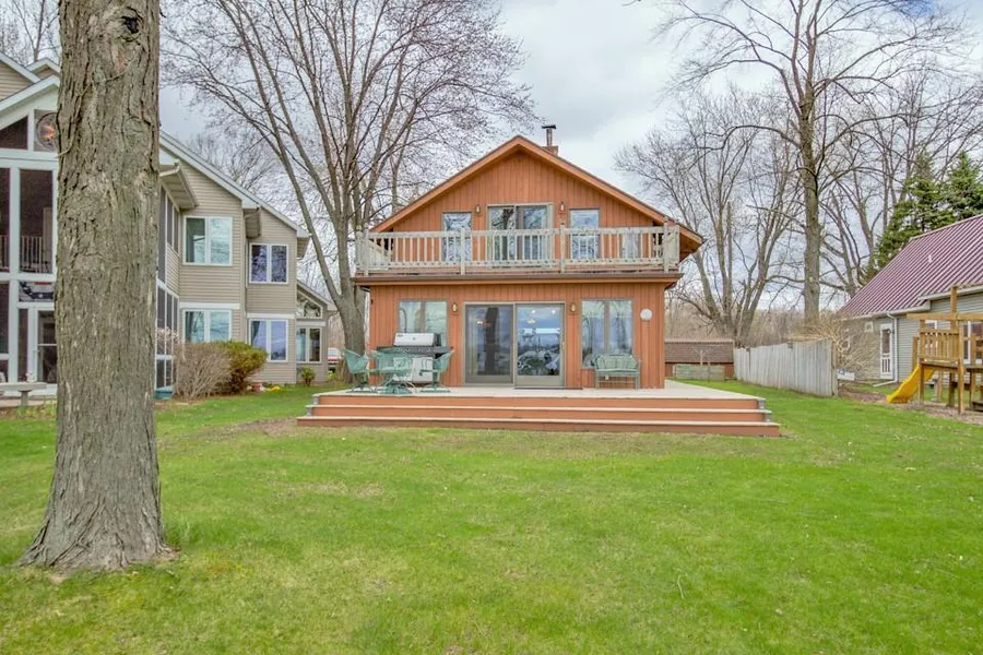 Welcome home! This 2 story lake front home was completely renovated in 1987 and features 3 bedrooms and 3 full bathrooms. Upon entering take notice of the ceramic tile flooring in foyer and first floor bath. The main level features a spacious kitchen with radiant floor heating, plenty of cabinet and counter space, and overlooks the dining room which features oak hardwood flooring. The main level also features a stunning living room with a wood burning fireplace, built in oak shelving, an oversized glass slider that provides stellar views of Lake Lansing and leads to the back deck that wraps around to the front of the home. All 3 bedrooms are located on the second level, including the master bedroom which features a beautiful balcony that overlooks the lake. The second level also features 2 full bathrooms. You're sure to love the extra-large heated garage with built in speakers, cabinetry and shelving, plenty of plugs, and running water which makes washing cars and boats really easy. The garage also features a pull down ladder to access the attic which features plenty of storage space. This home also features 30 feet of Lake Frontage on the all sports Lake Lansing, a GFI electric plug which extends out to the lake, an extra-long concrete driveway that is awesome for entertaining, and much more! Call today to schedule a private tour.
