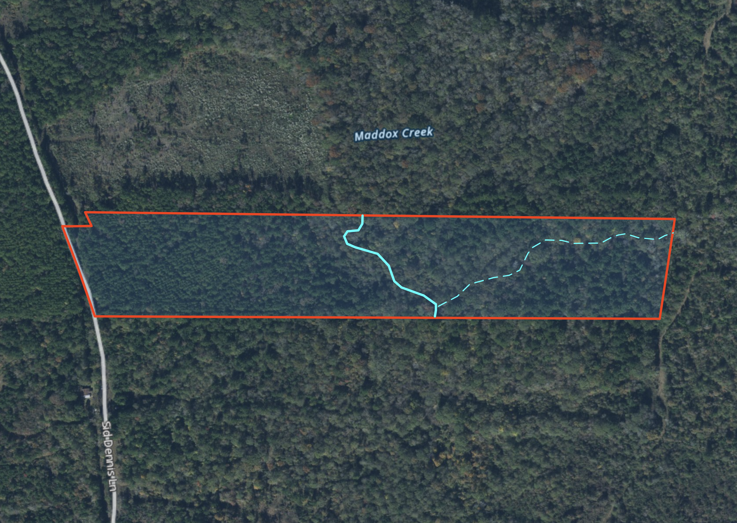 Maddox Creek is a year-round, spring fed creek that is crystal clear. Proof enough of the spring fed water is the beautiful blue tint. Very few creeks in East Texas look like this! There is also a small stream that is 2-3ft wide that runs into Maddox Creek approximately 50 yards from the southern boundary. This stream runs through the middle of the back 9 Acre section of hardwoods. It is likely that this stream is spring fed as well, as the pictures were taken after 3 weeks without rain, and there was still a healthy flow of water in this stream.