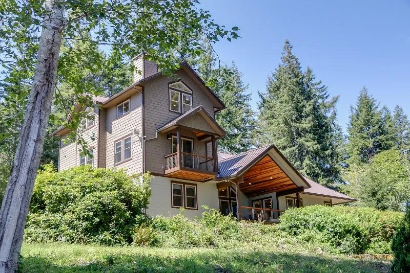 Just minutes from the charming town of Florence, Oregon you will find this secluded and private 3950 sq foot Custom home on 19.41 acres. Drive up and park under the vaulted porte-cochere. Beautiful tongue and groove redwood boards line the vaulted ceiling from the front parking area, into the living area and continue to the back deck. Beautiful views from the covered deck include a resident herd of Elk. The large entryway takes you into the living room. Many windows and skylights provide abundant natural lighting. The focal point in the living room is the Xtrordinair wood burning fireplace that features a marble hearth, wood storage area, and recirculation fan. The main floor of the home has engineered hickory flooring. The spacious kitchen is well designed and contains everything you need. Some of the amazing features you will find are custom cherry cabinets with copper hardware, soft touch drawers, double ovens, trash compactor, induction glass cooktop, pot filler, low maintenance quartz countertops, copper sink and faucet, radiant heat tile floor, and top of the line Bosch appliances included. A combined dining area has a large eating bar and a built-in floor to ceiling display cabinet.