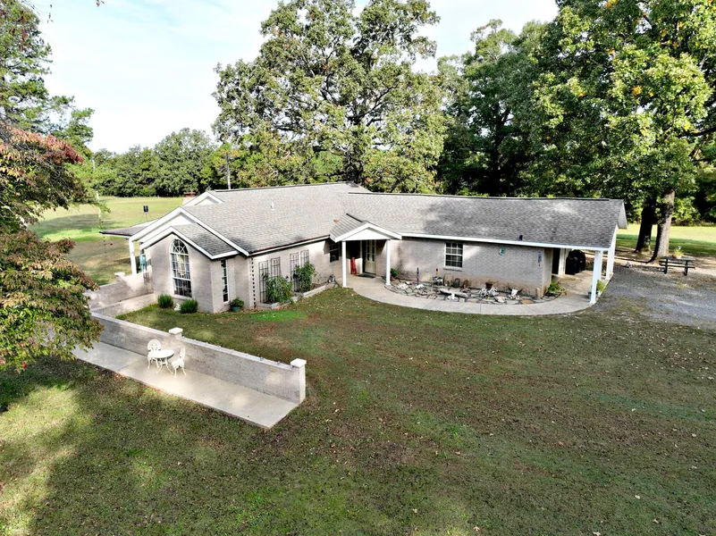 This beautiful, well-maintained property located in Hatton, AR includes beautiful views and all the privacy you could ask for. On the outside, there are two ponds, both stocked and spring fed. There are also three wells, and several outbuildings. One of the shops is hooked up to electric and water as well. There is a garage attached to the home, though it is not included in the square footage. Inside, there are three bedrooms, two full bathrooms, and an open concept floor plan. In the primary bedroom's ensuite bathroom there is a large tub and bluetooth speakers. The living area is large and has a built-in fireplace. The property also joins the timber company on the north side. With a multitude of deer and other wildlife, this property offers the epitome of rural and private living.