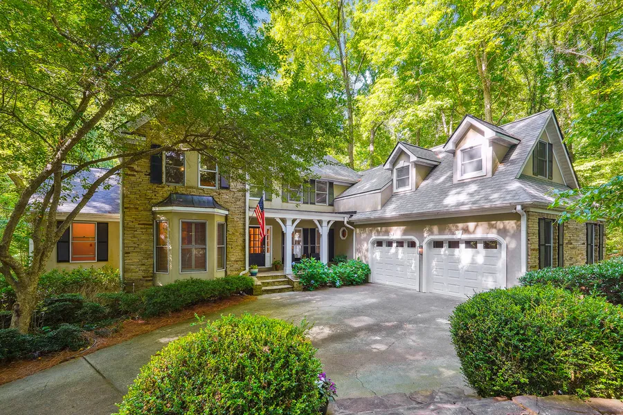 Beautiful courtyard entrance welcomes you to this private retreat, nestled on just under two acres in sought-after The Hermitage. The updated kitchen features a light filled breakfast room, stone countertops and stainless appliances, with the screened porch just steps away, perfect for that morning cup of coffee! The soaring ceilings of the great room are accentuated with a stunning stacked stone fireplace and a second access onto the rear porch, and the open concept dining room is wonderful for entertaining. The office on the main is complimented with built in bookcases and would also make a wonderful music room! The home boasts a master bedroom on the main level, which enjoys private access to the rear deck. Upstairs there are three additional bedrooms and two baths, and a bonus room that could be a 5th bedroom or used as a media room or playroom. The daylight basement is partially finished and has so much extra storage space! It is stubbed for a bath and could also be finished for additional living space, converted into an in-law or guest suite, or used as a hang out area or playroom. Walk out to the lower, covered patio area. Other outdoor spaces include the grilling deck, the screened porch, a stone patio for alfresco dining, and a fantastic fire pit area, ideal for whiling away the evening with a glass of wine or making s'mores and memories with friends! Such a peaceful and tranquil oasis, yet only minutes from shopping and dining at The Avenue of West Cobb, and only seven miles from the vibrant Marietta Square. Neighborhood amenities include swim and tennis, playground area, basketball court, clubhouse, and walking trails with a footbridge over Allatoona Creek, which runs through the neighborhood. Nearby parks and trails also abound, including the Silver Comet biking trail. Home is serviced by award winning schools, Vaughn Elementary/Lost Mountain Middle/Harrison High, and is convenient to Kennesaw State University.