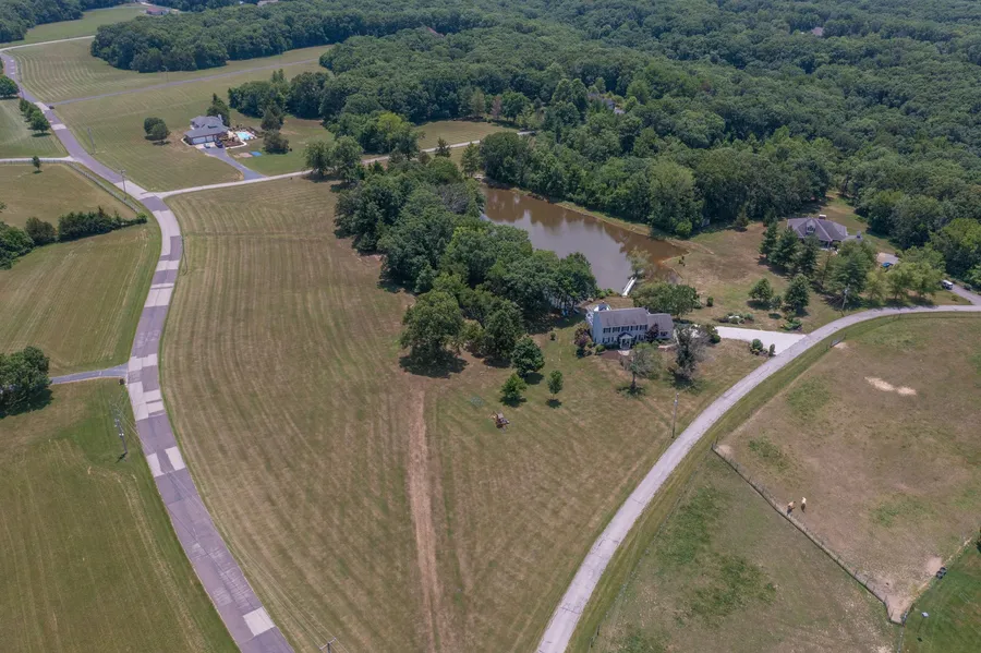 Equestrian lover's dream! This 10+ acre property is the perfect location to build your new barn with a 1+ acre pond and heavily wooded tree line. There is plenty of pasture to fence as well as room to put up an arena. On this property you will find a beautiful 2 story home. The upstairs has 2 bedrooms, an office/den, and a master en suite with a walk-in closet. On the main floor is the family room with marble gas fireplace and beautiful wood floors, a gourmet kitchen featuring 42" cabinets, a large island, and black stainless steel appliances, and a separate dining room with a beautiful Pottery Barn chandelier. The walkout lower level has a 4th bedroom with a full bathroom perfect for guests. Outside has tons of room for entertaining with a large deck and built in hot tub and pond with a bridge leading to a private island. If this weren't enough the new Samsung appliances, washer and dryer, Bobcat mower, Jon Boat, paddle boat, new hot tub and playground equipment are included.