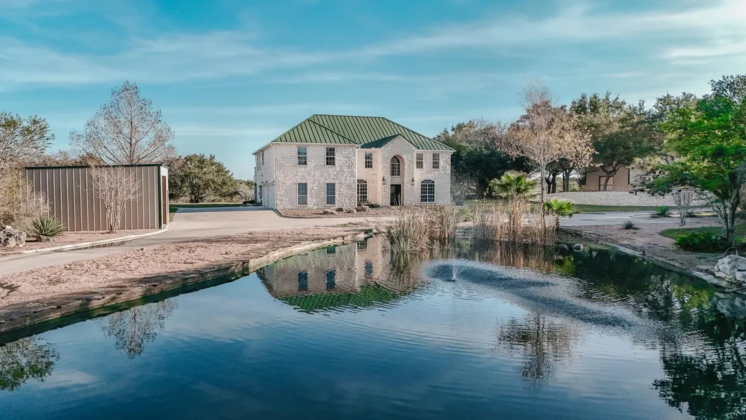 Welcome to 194 Panorama, where luxury and tranquility come together in the heart of the stunning Hill Country. This magnificent 5 bedroom, 4 bath estate offers over 4,000 square feet of thoughtfully designed living space, set on an expansive 16.18-acres. The spacious interior features a gorgeous kitchen with granite countertops, large living areas, and a serene primary suite complete with a luxurious tub and oversized walk-in shower. A 3-car garage provides plenty of room for vehicles, storage, or hobbies. Step outside to your private resort: a sparkling pool, a picturesque pond, and wide-open spaces ready to enjoy. Approximately 1.5 acres of the property are fenced for pasture or grazing, offering flexibility for animals or additional use. A 480-square-foot metal building adds even more versatility. With its incredible acreage, high-end amenities, and breathtaking surroundings, 194 Panorama is Hill Country living at its finest.