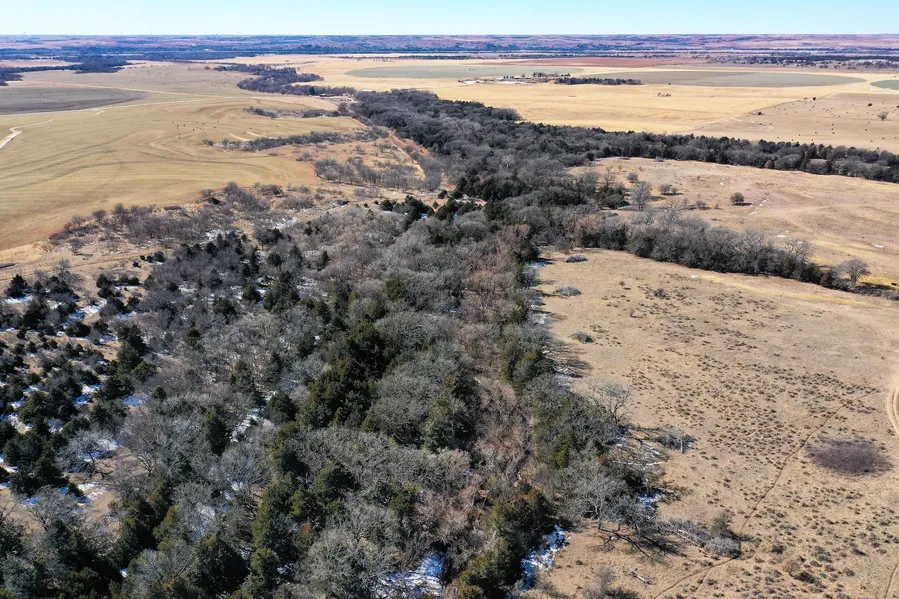 Here’s a beautiful property with loads of potential. On the north side of the road, there are 115 Acres of expiring CRP, consisting of flowing Love grass-covered hills. Lying South of the road is another 147 Acres, consisting of Native grasses, currently being used to pasture cattle. There’s an old homestead with electric and a water-well in a great location to build a home or cabin. Some out-buildings on the homestead acreage are still usable. The live creek is the highlight of the property. It maintains a heavy water flow even in drought conditions. The creek supports some large, beautiful hardwoods, consisting of Red Oak, White Oak, Cottonwoods, China-Berry, and Elm, among others. This area has some fantastic deer and turkey hunting and could be easily set up as a premier hunting tract. There are some secluded locations for food plots and feeders. With minimal work, it’ll make the per...