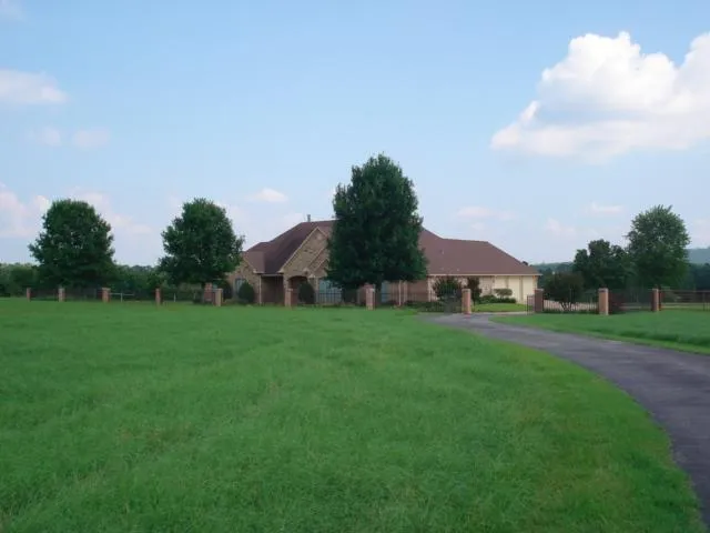 GORGEOUS CUSTOM BUILT HOME ON 97+ ACRES. Enter the property through the LOVELY WROUGHT IRON GATE and enjoy the dramatic views of the home and land. This home was built in 2002 and has beautiful upgrades including CROWN MOLDING, HARDWOOD FLOORS, a spacious dining room with built-ins, 10 FOOT CEILINGS, Hunter Douglas REMOTE CONTROL BLINDS, WHOLE HOUSE VACUUM, HOUSE GENERATOR, attractive wood burning fireplace, and offers 3 SPACIOUS BEDROOMS, 2 FULL BATHS plus 2 HALF BATHS, an OFFICE (which could be made into a 4th bedroom---has it's own half bath) and an EXERCISE ROOM. For the cook in the family, enjoy the pretty kitchen with CUSTOM CABINETS made by a company in Flint, Texas, QUARTZ COUNTERTOPS and Kitchen-Aid appliances. And, that's just the beginning!!! From the living room, sit back and enjoy the wonderful VIEW of the land. Step out to the comfortable covered patio and entertain w...