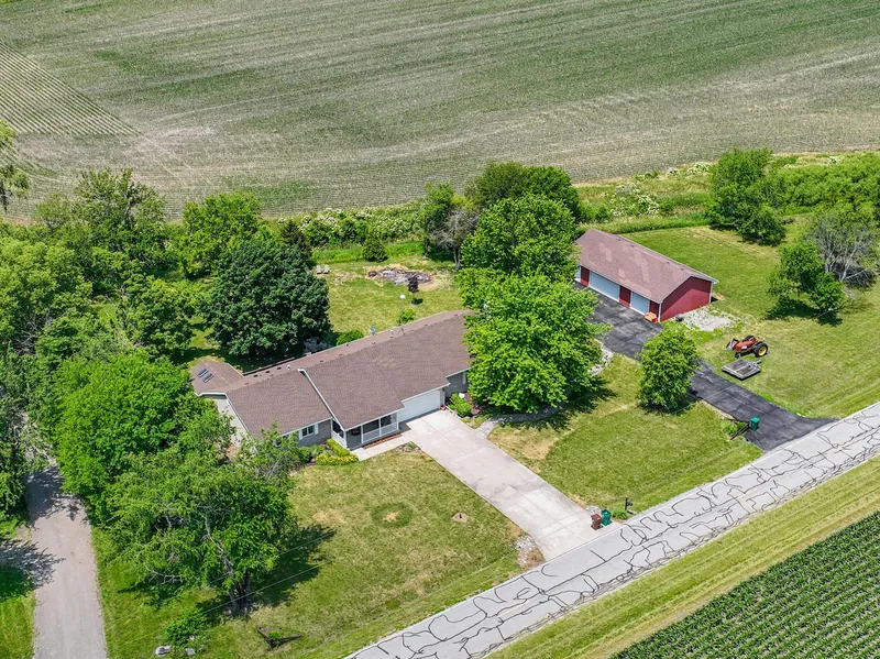Beautiful ranch home situated on just under 2 acres in a secluded country area. Interior features include formal dining room, expansive updated kitchen with breakfast bar and large eating space, granite counter-tops and back-splashes, all stainless appliances stay, family room with fireplace, rec room that could easily be turned into a 4th bedroom, 4 season room adjoined to master bedroom and 2.5 bathrooms. Enjoy backyard activities thanks to easy access to deck from master bedroom or kitchen, large backyard, numerous trees and fire pit. Detached 30 X 50 finished and heated out building can be used for untold job related uses, supplied with 200 amp service and negotiable electric car lift. Easy access to 4 foot concrete floor crawl space from outside entrance. Convenient access to local sites and highways. Only a couple short minutes from I80 access. This is a must see! Zoned ag so chick...
