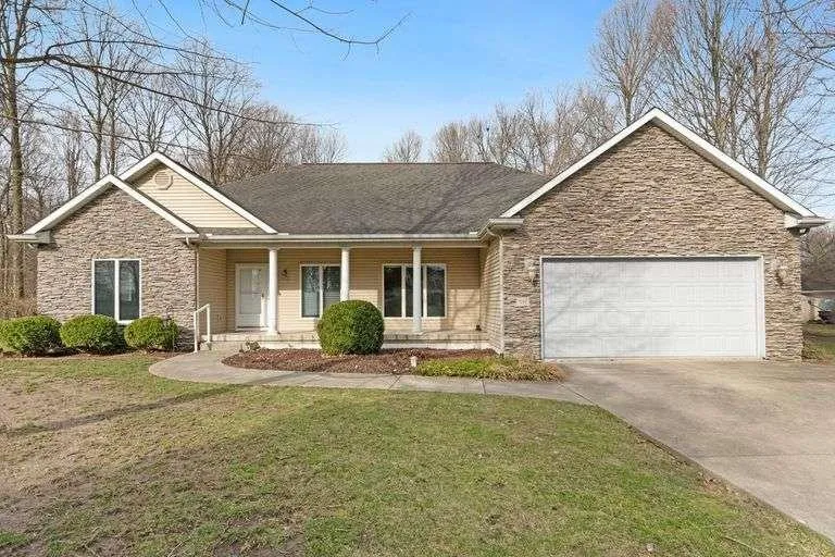 Nestled on a picturesque acre, this stunning ranch home offers a perfect blend of comfort and elegance. As you enter through the foyer, you'll find a convenient half bath, and be led into a light filled living room featuring a gas stone fireplace. The open kitchen and dining area are designed for both functionality and style, with a breakfast bar for casual dining and a patio door that opens to a beautiful stone paver patio complete with a cozy firepit.