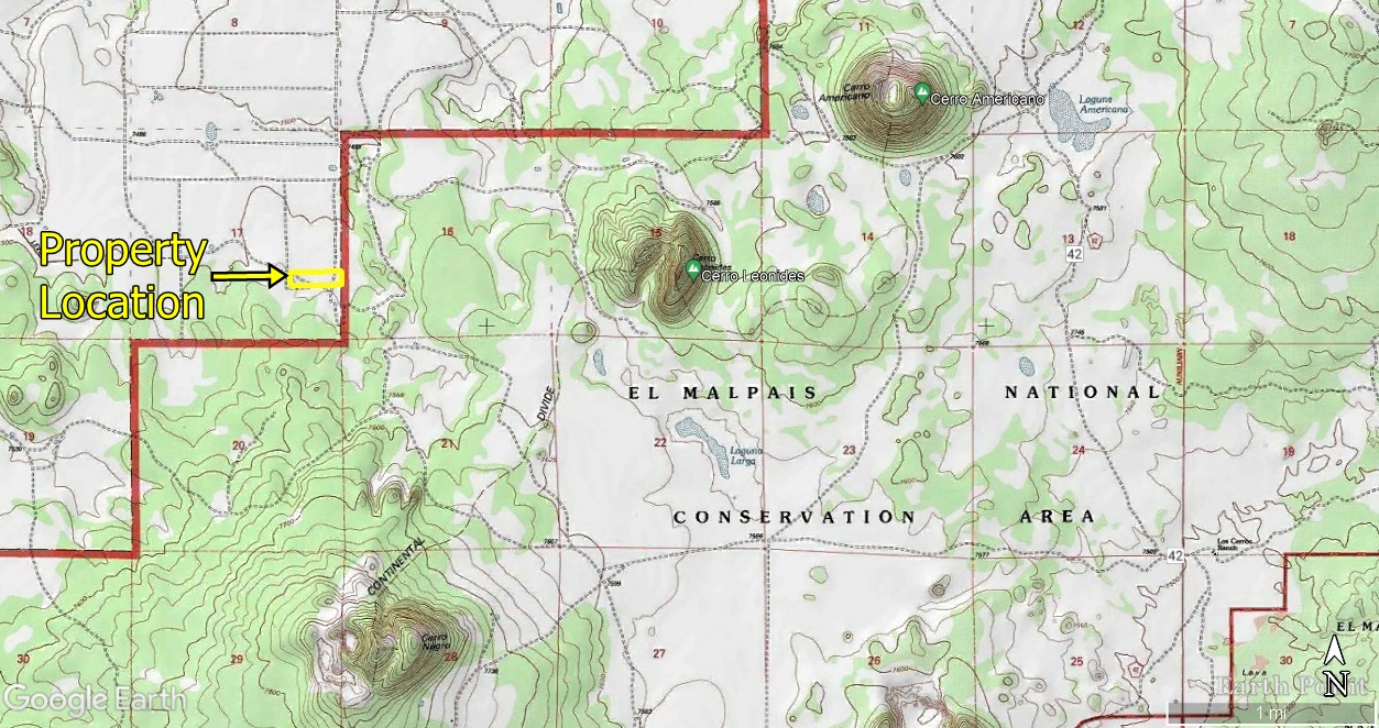 The east side of the property adjoins the El Malpais National Conservation Area, a large area nationally recognized for its significant geological, archaeological, ecological, cultural, scenic, scientific, and wilderness resources.