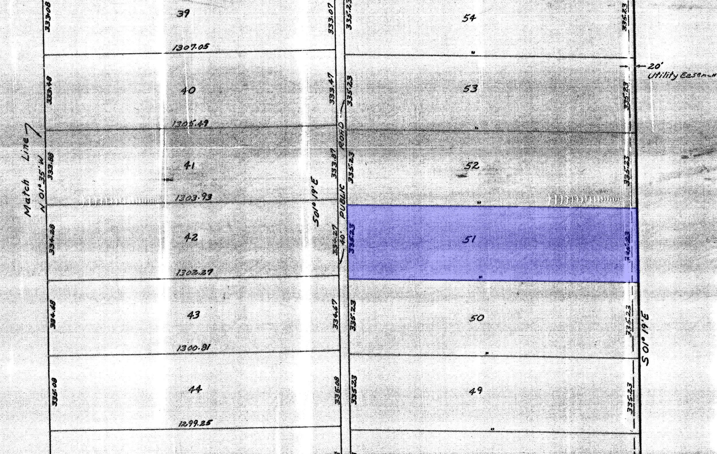 Lot 51 has frontage along Camino Del Tesoro Road, which comes right off of Camino Del Desierto, the main road through Unit 1. The property is located in the southeastern part of Unit 1 and its terrain is very lightly rolling. Power lines are about 0.72 mile away.