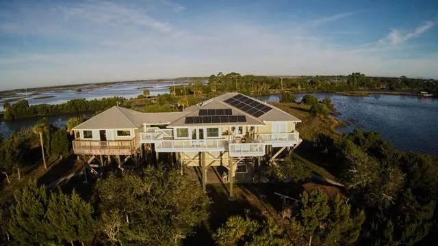 Gated wood bridge for driveway. Unique well appointed home. Main house is 4 BR, 3 BA, 2 half baths, 2nd suite is self contained & has wet bar & fridge. Solar panels reduce energy costs. Boat house & dock, kayak launch, fire pit , open porches, & bonus BBQ house, perfect gathering spot, plenty of parking, protected yet open. Bridge engineered for heavy loads. Dual ovens complement SS commercial grade stove. SS French door refrigerator. Granite counters. RETREAT for YOU, fully furnished-ALL the amenities, inc. 2-75 inch flat screen TVs, Bose sound system. Each bedroom has private bath, stone tile shower. Painted '18, new floors '18, furniture & decor upgrades '18. New windows & doors! Income producing w/rental income