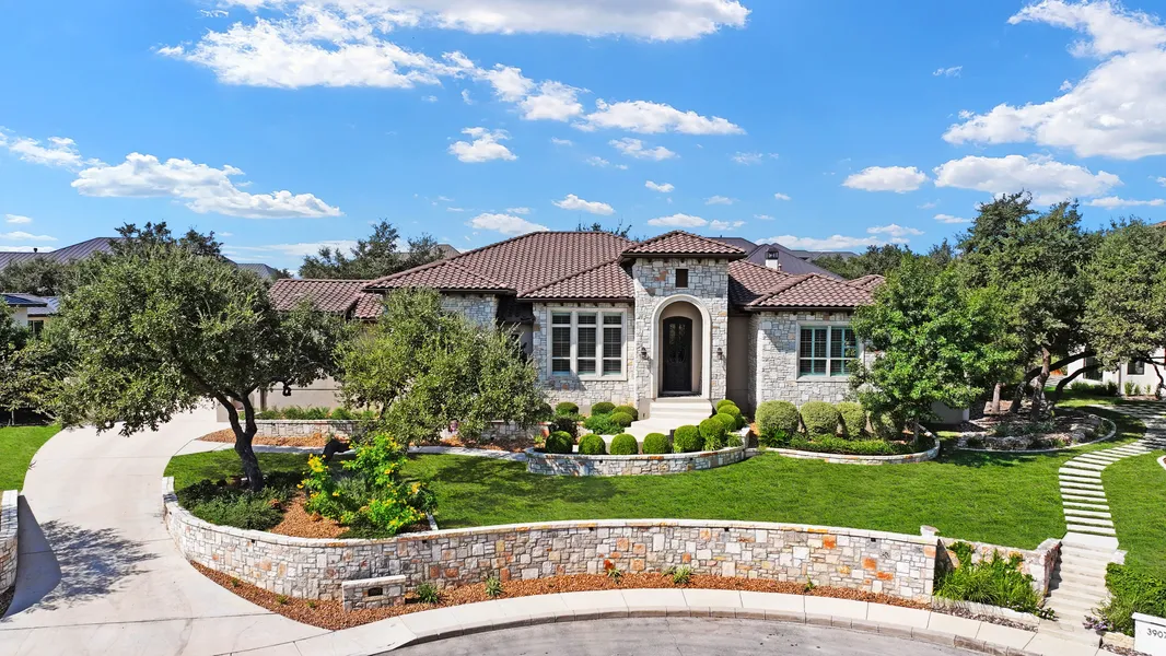 This beautifully crafted single-story home offers timeless luxury in the heart of Cibolo Canyons. Every detail showcases quality, from the elegant soft finished wall and hardwood floors to the custom window treatments and intricate ceiling designs. The family room impresses with a stunning floor-to-ceiling marble fireplace, complete with dual niches and accent lighting. The gourmet kitchen is a chef's dream, featuring Thermador stainless steel appliances, custom cabinetry, and a spacious granite island with counter height seating. The master suite, with its own patio access, includes a spa-like bath and a generously sized walk-in closet with custom built-ins. Three additional guest bedrooms, all with private baths and walk-in closets, highlight the home's thoughtful design. Outside, enjoy a peaceful retreat with lush landscaping, a large covered patio, and stylish wood-paneled ceiling ac...