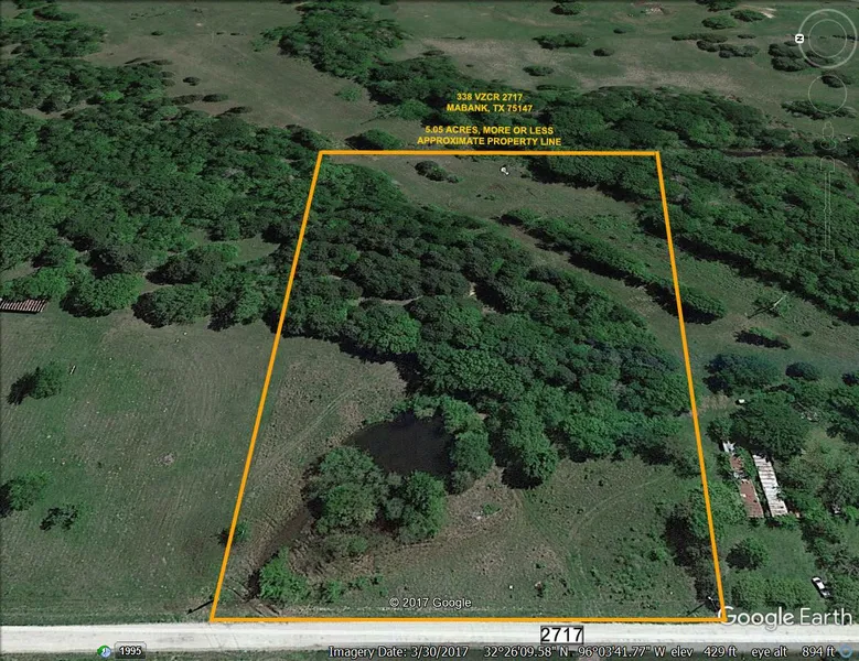 Research Parcel InformationFROM MABANK AT INTERSECTION OF HWY 175 AND HWY 198, NORTH ON 198, LEFT ON FM 90 ABOUT 4 MILES, THEN, RIGHT ON COUNTY ROAD 4011, STRAIGHT FOR ABOUT 3 MILES, THEN, LEFT ON VZCR 2717 PROPERTY ON THE RIGHT (AS YOU CROSS THE COUNTY LINE, CR 4011 BECOMES VZCR 2708).