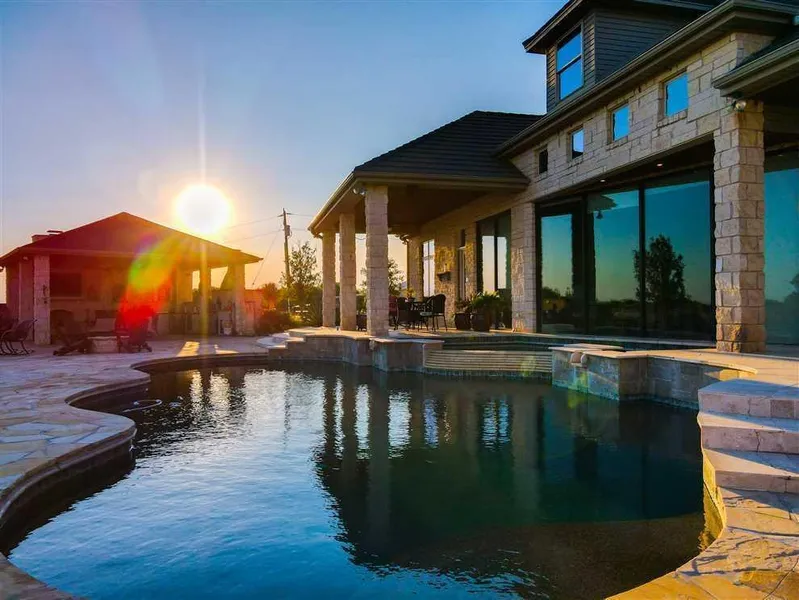 Luxury knows no bounds when it comes to this mixed use residential, recreational, ranchland 416.12 acre property outside of Holliday, TX 76366 in Archer County and the Holliday school district. The 4700 Sq. Ft. house was meticulously crafted and designed to offer all of the comforts your heart could desire, from the 3 bedrooms and 3 full baths to the open concept living room/dining room/kitchen. Marble, slate and hand scraped wood adorn the floors. The ceiling stretches to 16 Ft, while grand columns and archways add a degree of separation from living room to the game room/2nd living area. The home and shop have a built-in security system. Views through the large windows and French doors in the first floor master suite are breathtaking. The French doors lead directly to the swimming pool and backyard oasis. The master bath has a jetted tub, walk-in shower, a wall mounted fireplace, a huge...