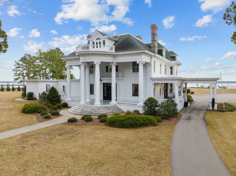 Riverfront Bed and Breakfast with Marina for sale in Belhaven, NC. The historical River Forest Manor and Marina is for sale in Eastern NC. This unbelievable property sits on over four acres on Pungo Creek and is just minutes away from the Inner Coastal Waterway. The main home boast over 13,000 square foot with nine bedrooms, most with their own private bath. A ddetached structure has three bedrooms, eac with its own bath and there is an additional room located over the marina with spanning water views. This fabulous property is currently a running bed and breakfast with a marina as well as a beautiful wedding venue.