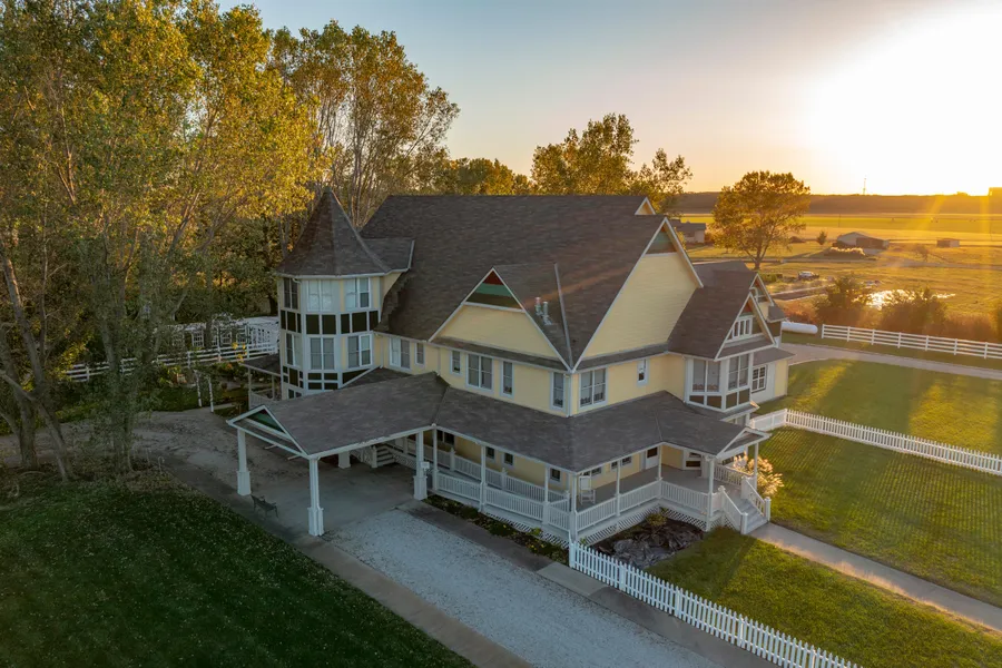 The inn is a Victorian style home that was built in 1998. The home is 7,626 sq. ft. and has a full basement that is partially finished. There are living quarters located on the second floor that the current owners reside in. Above the living quarters sits a tower room that provides a fantastic view of the countryside. There is a great wrap around porch on the home where you could sit and enjoy a relaxing evening. A four rail vinyl fence sits on the properties north, east, and west side. A white picket fence encloses the homes front yard and adds to the Victorian charm. This is a house you have to see for yourself to truly appreciate!