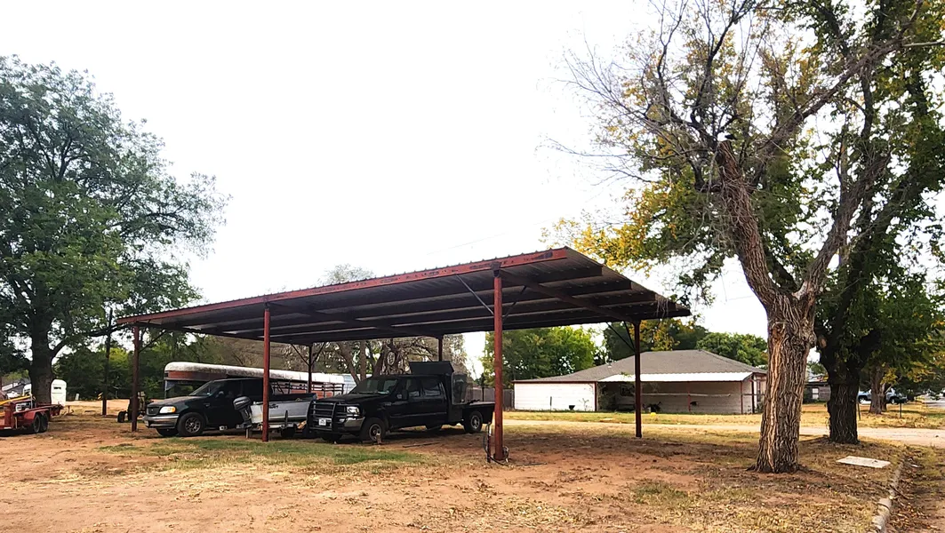 This home sits on corner lots and has an RV site-built carport, van box storage units,a chicken house and fenced run, and a potting shed.