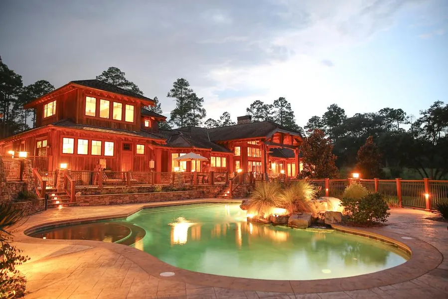 Bending Hills is a unique opportunity to own significant acreage on a plantation like setting convenient to downtown Tallahassee. Just minutes from town, along an ancient oak canopied road, you enter Bending Hills through its private, gated entrance and as the drive meanders through the rolling landscape and across the bridge you approach the custom built, timber frame home. The house is designed by noted western architect Ken Pieper, and beautifully blends a western contemporary style with local materials and craftsmanship. Solid cypress beams frame out the formal living area, with other details including wormy chestnut flooring vaulted ceilings, an enormous masonry fireplace and built-in cabinetry. Large windows and custom doors overlook the gracious rear patio and pool area, with a spring fed lake creating the backdrop. The 6 bedroom, 7.5 bath house includes a luxurious master suite with a double sided fireplace that also opens to the bathroom, which is complete with double vanities, soaking tub, shower, and oversized walk-in closets. The professional grade kitchen includes granite countertops, custom cabinetry, and viking commercial grade appliances. The thoughtful design allows for a private, soundproof den in the childrens suite, along with studio space, and a full office area. The outdoor living spaces at Bending Hill are nothing short of exceptional. The large covered patio leads to the outdoor kitchen pavilion, which includes stainless steel grill, deep fryers, and kitchen amenities- all overlooking the stunning saltwater pool. The native landscaping transitions seamlessly with the surrounding natural setting. No features, details, or upgrades have been overlooked in the construction of this magnifent home.