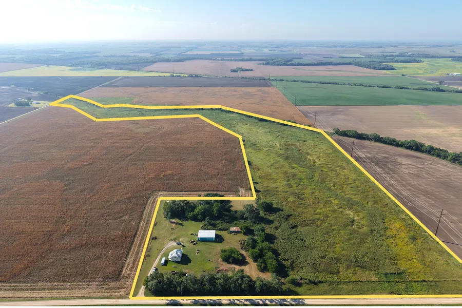 New to the market is this quaint 62 acre +/- farm lying east of Bennington, Kansas. A property like this one isn't offered for sale very often, so don't overlook this tract! The home features two stories and was built in 1917. There are three bedrooms and two bathrooms in this 1,500 square foot home. The large, open living room and kitchen are the first to greet you as you enter the home, with the bedrooms on the second floor. No need to worry about storage space, as there is plenty of room with a 42'x60' shop southwest of the house! The shop is 1/3 concrete and 2/3 dirt floor. Highway 18 is just a mile and a half north of the house, with well maintained gravel roads leading to the property.