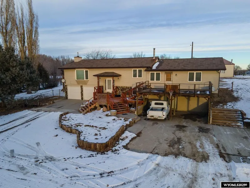 Welcome to 12 Darnall Road, a property that truly has it all—space, amenities, and the lifestyle. This spacious 4-bedroom, 2-bath home offers over 3,700 sq ft of well-designed living space. Inside, you’ll find a true chef’s kitchen with granite countertops, premium Café appliances, extensive cabinetry, and an ideal layout for cooking and gathering. The kitchen opens into the living room, which features vaulted ceilings and natural light. A large primary bedroom offers relaxation and convenience with direct access to the deck, which is perfect for morning coffee and evening sunsets. The pellet stove in the lower-level family room creates a warm, inviting atmosphere, and you are sure to appreciate the convenience of the walk-out basement. The floor plan of this home allows flexibility for your way of life. Set on 4.51 irrigated acres, this property offers space, land, and opportunity. The acreage is well-suited for horses or livestock with room to fence, graze, ride, or expand. A seasonal pond adds charm and creates a peaceful setting in the summer months. The 48x40 insulated and finished shop is large enough for equipment, trailers, boats, or vehicles, as well as woodworking or mechanic projects. Relax on the deck and watch the sun settle behind breathtaking mountain views, or spend summer evenings walking the property, relaxing by the pond, or sipping coffee while the horses graze nearby. With irrigation rights, maintaining pasture or gardening becomes easy and productive. Whether you’re looking for hobby farming, space for animals, or a place to breathe and spread out, this property delivers! Just minutes from town, you’ll enjoy modern convenience without sacrificing tranquility, privacy, or open landscape. Contact Brooke McWilliams with Wind River Realty at 307-349-1770 to schedule a private showing!