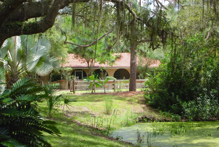 REDUCED; MOTIVATED SELLERS! MYAKKA VALLEY RANCHES: Big 3/2/2 pool home with air-conditioned studio, workshop, and 3-stall horse barn on 5 absolutely gorgeous, park-like acres. If you like privacy, huge oaks, and the opportunity to work at home, this is your property! The split-plan home is situated in the middle of the lot, surrounded by mature trees, clusters of bamboo, and a big nursery, which is waiting for a new owner. The home features ceramic tile throughout, an open floor plan with a big kitchen with granite counter tops, wooden cabinets, and s/s appliances. The great room has a lovely view of a koi pond and heated lap pool. The dining room connects the great room with a big bonus room in the front of the house. The master bedroom has plenty of closet space, a sitting area, and a master bath with a jetted tub, granite tops with twin vanities, and a separate shower. The home has accordion hurricane shutters, and solar back-up power (needs new battery). In the back of the property we find an 1800 sq. ft. building, which houses a 1200 sq. ft. air-conditioned studio with a kitchenette, a full bathroom, and a workshop with a big sliding door. There is also a 3-stall horse barn with a wash rack and a tack/feed room. The property backs up to one of the many saddle trails that make Myakka Valley Ranches absolutely unique in Sarasota county. Although you are surrounded by nature, Downtown Sarasota is only 30 mins. away. Good schools, shops, restaurants are all in the area. Myakka River State Park, Florida's biggest state park, is less than 2 miles up the road. Welcome to paradise!
