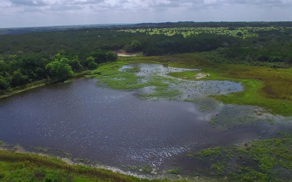 This is a ranch with loads of character. The rolling topography has 100 foot elevation changes and there are big views from several hilltops. The land has good tree cover, including huge live oak, post oak, spanish oak, elm, mesquite, and cedar. There are open meadows that are ideal for food plots. The ranch has not been overgrazed and has a good cover of native grasses. The hunting is excellent and wildlife includes deer, turkey, dove, quail, ducks, and hogs. If you like to fish, a multi-acre lake and a spring fed pond are stocked with bass and perch. 5 more ponds provide water for wildlife and livestock and the topography lends itself for additional lakes and/or ponds. A seasonal creek meanders through the ranch and could be dammed to create a cool water feature.