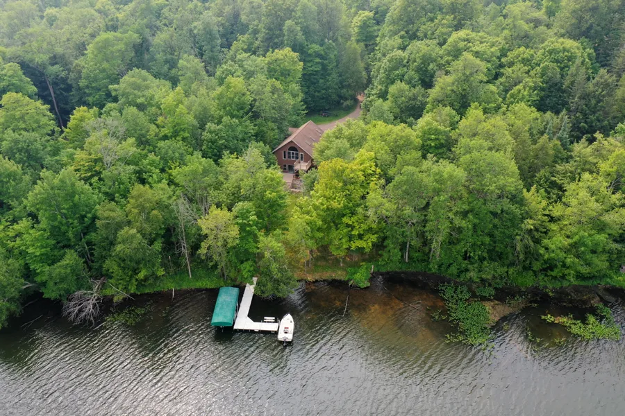 Enjoy some of the nicest water frontage on Big Spirit Lake! Cedar sided 2+ bedroom, 1.75 bath lake home or cabin. Open concept design. Oak kitchen with large island. Spacious living room with gas fireplace and cathedral ceilings. Main floor bedroom and full bath with laundry. Upper level bedroom, 3/4 bath and loft with 2 private decks. Beautiful yard with a gentle slope to over 300 feet of water frontage. Big Spirit Lake is +/-213 acres with access to +/-126 acre Little Spirit Lake. You can expect to catch walleye, northern pike, muskie, largemouth bass, crappies and bluegills on Big Spirit and Little Spirit Lakes. The property is located close to Timm's Hill, snowmobile, atv and non-motorized trail systems. The appliances, yard shed, dock system and (2) boat lifts are included in the sale price.