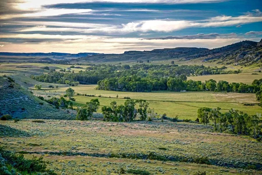 ~ Pleasing combination of irrigated meadows, cottonwood forest, and overlooking hills
