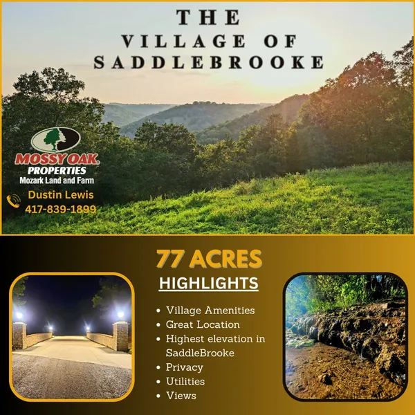 This one stands above the rest! Literally, it's located on the highest point in The Village of Saddlebrooke. Located in a highly sought-after area and includes many great community amenities. You're guaranteed views for miles! The village has an astonishing 4,500 acres of beautiful hilltops, stunning valleys and crystal-clear creeks, which joins thousands more acres of Mark Twain National Forest. This is captivating acreage that never becomes available within this community. With most of the properties being around an acre in size, this property boasts 77 fantastic acres. To add to the elegance of this community they also have amenities including a community building with meeting rooms, swimming pool, basketball and tennis courts, and a pavilion at the park to enjoy family gatherings by the grill and creek. This community was designed to have mother nature on full display. Conveniently located with quick access to Highway 65 and about 10 minutes to restaurants, shows and shopping at the Branson Landing, you are sure to always have something to do when friends and family visit. The Village has many interesting and unique houses including 2007 and 2020 Home of the Year winners as chosen by 417 Magazine. It's hard to list everything this village and area entails. Call me today to get all the details and a tour of this one-of-a-kind village. You will not be disappointed.