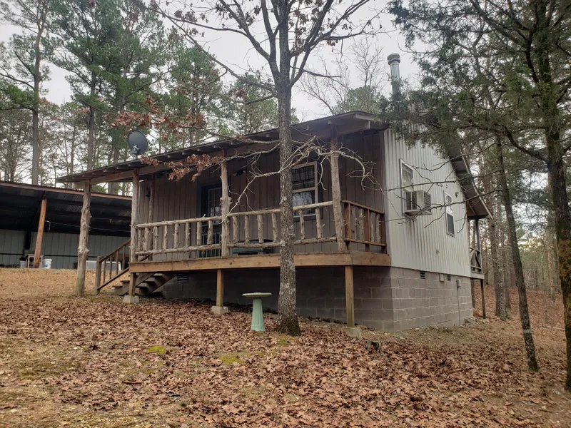 A property like this doesn't come around very often! 4.52 acres with a cabin, wooded land, shed, an extra slab and small storage building. One bedroom one bath cabin perfect for 1 person or for your week-end retreat. Shed is great for a carport or to store your ATV's. Outdoor shower works great for after yard work or a long day on the trails! Not too far from Wolf Pen Trails! Very secluded yet right on a paved road.