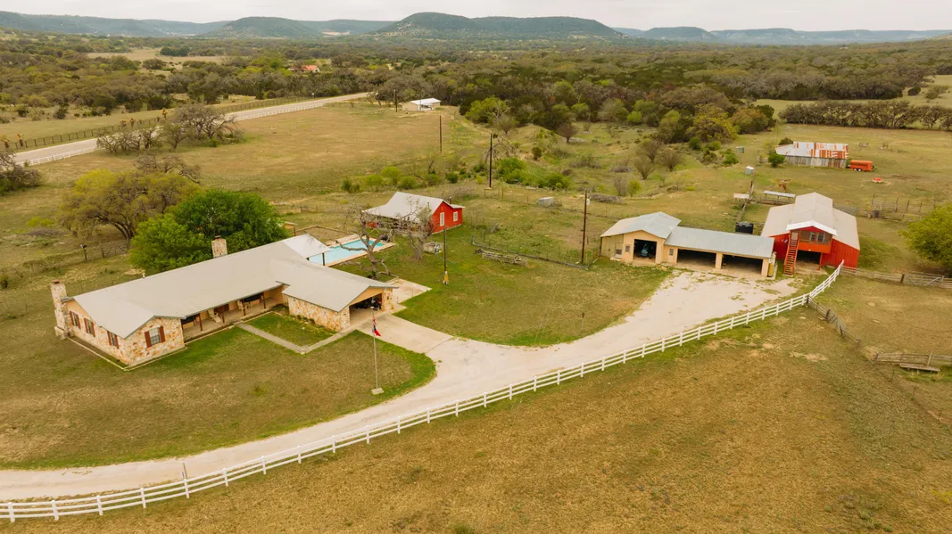 Welcome to the farm, a 57+/-ac income producing property 2 miles from Tarpley, TX. This getaway features a 3/2 rock faced, one story main house with 2 fireplaces and a 2 car garage accessed off FM 470 via electric entry and paved drive. Additionally, in the main compound, are 2 cozy and well-appointed cottages, a centrally located pool, and a studio apartment above the horse stables. A fifth dwelling is a like new caretaker's home distant from the main compound with its separate entrance. Standing apart from most land offerings in this area, the terrain and topography is open and mostly flat consisting of soil that is both fertile and tillable. In the past it has been used as a miniature horse breeding farm, and it is particularly well suited for horses or other pleasure animals being cross fenced, well-watered, and having covered stables. A fully stocked workshop, 3 bay equipment barn, and storage area were designed and built to be functional. Much equipment, tractor, implements, and even a like new utv are included with this offering. The pleasant views of the surrounding hills are still yours to behold, but the ground underfoot is usable and gentle country. A domestic water well furnishes water via buried lines to the various structures throughout the property. 2 additional capped wells are strategically located for any contemplated future water development. This property is perfectly suited to host an agricultural breeding enterprise along with the ability to furnish supplementary income as a charming, well located bed and breakfast. - 5/17/2023 1:00:46 PM