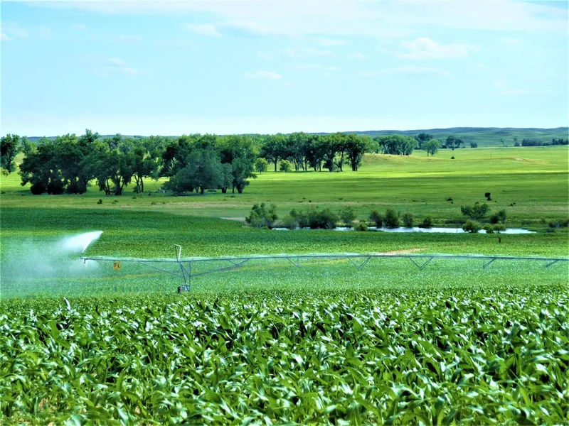 Three center pivot systems with high volume wells irrigate 424 acres currently in corn, rye, forage crops, an irrigated cool season grassto be hayed or grazed.