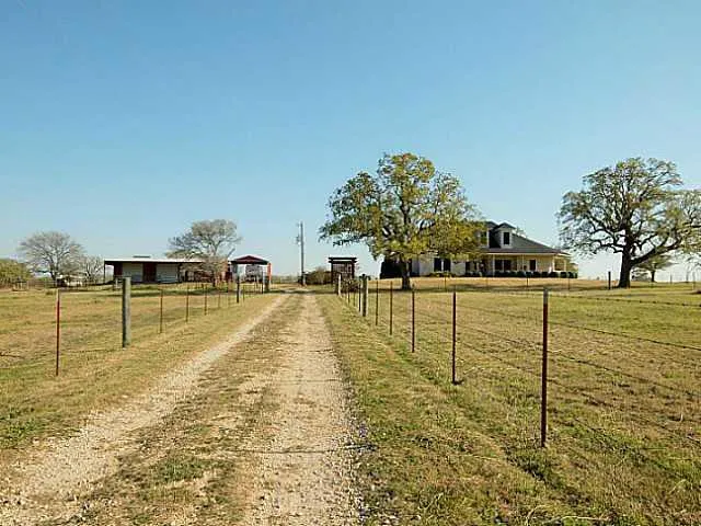 A beautiful 24.27 acres ranch just east of Blue, TX with pastures, a pond (tank) that never goes dry, and a gorgeous 2529 sq ft brick home with an above ground pool. Home has covered front porch and screened in back porch. There is a large barn and workshop with 3 roll up doors, pens for livestock, and a carport for a big RV. There is a private one-bedroom guest house with bath and kitchen. Bring the family, guests, horses or cattle and start enjoying the good life!