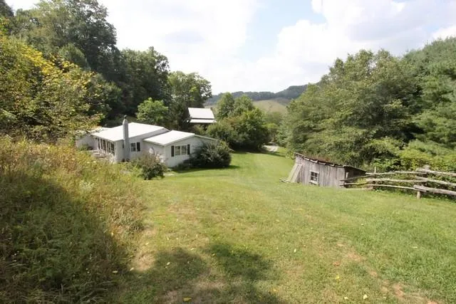 Blue Ridge Mountain Farm 46 acres with home and guest cabin located in close proximity to Grayson Highlands Park. This is a must see, a true antique log cabin with open floor plan and a 2 bedroom home, numerous outbuildings, several high tensile fenced pastures and long range south and westerly views. This property fronts on a paved state maintained road yet is very private and secluded. The cottage and home are well furnished with quality antiques and comfortable furniture. Both dwellings come fully furnished down to the dishes, so just pack your bags and come and spend the weekend! Cabin features wraparound porch/ deck complete with swing and built in seating, wormy chestnut doors, fire place with gas logs, hardwood floors, full bath and sleeping loft. Home has 2 bedrooms, large family room, sunroom open deck and covered porch.