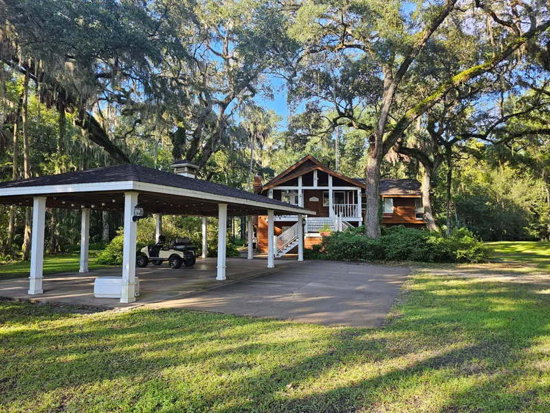 Escape to the picturesque beauty of a wedding venue nestled on a thriving "you-pick" blueberry farm. This property is a dream come true for anyone seeking to own a unique and enchanting venue. In the canopy of shade provided by the majestic live oak trees, a breathtaking backdrop is provided for indoor and outdoor wedding ceremonies. These natural giants add a touch of timeless elegance to The property featuring a rustic yet elegant wedding barn with power. This extraordinary property offers the perfect backdrop for your dream wedding venue with a charming wedding barn, a modern cabin home under majestic live oaks, nine parcels of land, 19 acres of blueberry fields, two large agricultural wells, river frontage on the Withlacoochee River and even a cozy mobile home. The barn's warm wood interior and elegant touches, including a baby grand piano and real crystal chandelier, create a magica...