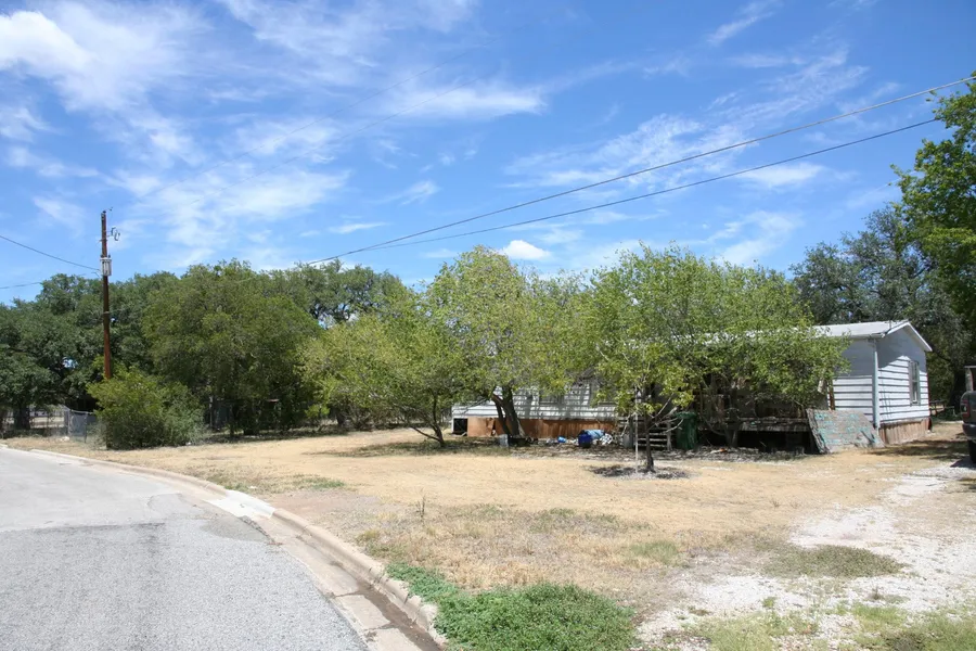 This large buildable lot is located at the south end of Bluffton Street at the intersection of FM 1031 (also known as Chappel Road). The city of San Saba owns undeveloped land adjoining it. This area sits at a higher elevation than most of the city of San Saba and is about the first place to receive the south breezes in the summertime. The lot is level and has several trees scattered over it. All city utilities are on site. There is an old double-wide mobile home and outbuilding. Both structures are in poor condition. After the lot is cleared and cleaned, it will be a nice building site right at the edge of town.