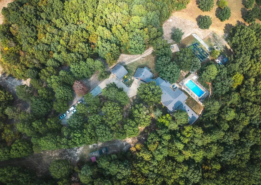 Welcome to this stunning 7-bedroom, 6-bath estate set on 5 peaceful acres at the end of a quiet dead-end road in Patton, MO. With 4,627 square feet, this home offers beautiful seasonal lake views, a wooded backdrop, and a thoughtfully designed layout perfect for everyday living and family gatherings. The interior features lots of windows that flood the space with natural light, a sunroom, a spacious family room on the lower level, and multiple bonus rooms ideal for a home office, craft room, or homeschool setup. The living room boasts a cozy gas fireplace, creating a warm atmosphere. The spacious master suite includes a large soaking tub, separate shower, and ample space to unwind. A multi-unit HVAC system provides efficient climate control, while generous storage helps keep everything organized. Step outside to discover a true outdoor haven. A large deck overlooks the gated inground poolcomplete with an electric pool coverand is perfect for family gatherings, BBQs, or quiet evenings. The pool house includes a changing room and bathroom for convenience. Gather around the cozy firepit, relax under the charming gazebo, or put your green thumb to use in the greenhouse. The backyard offers a perfect open space for a garden, plus a private playground and multiple garagesincluding a room above with a separate entranceoffering endless possibilities for a studio, hobby space, or extended living area. The circle driveway ensures easy access and plenty of parking. Priced to sell, this exceptional home combines space, privacy, and convenience in a serene natural settingan opportunity you don’t want to miss!