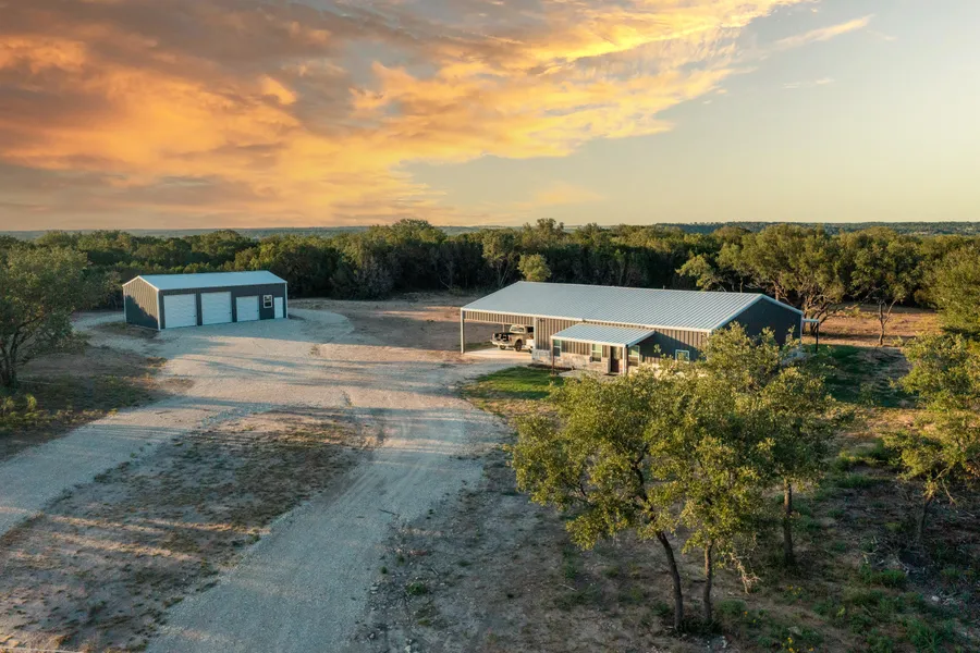 Sitting on 12 acres in a secluded area of Hamilton County is this beautiful custom home and shop. This picturesque acreage has a mix of hardwoods & cedar and is conveniently located within 12 minutes of Hamilton, and a short back road drive to the Leon River and some of the most beautiful scenery Hamilton County has to offer. At the road, you have a new pipe entry inset with an automatic gate. From here, you meander to the home atop the crushed rock driveway. There is a new well, drilled in 2022 & producing 30 gpm, surrounded by a nice metal well house. The propane tank for the home sits in this area as well. There is also a new septic, installed in 2022. The home, built in 2022 consists of 2300 square-foot with a 25X48 ft attached oversized carport & an additional storage area (also attached). The home is metal frame construction and is heavily insulated with 1 inch closed cell in the frame, and then 6 inches of open cell in the ceiling. Offering a split floor plan design, the home is perfect for families. The main living areas of the home have a spacious open concept, and also include 10 foot ceilings and a propane fireplace. There are 3 bedrooms, 2 bathrooms, a large laundry/mud room and an additional office space. The bedrooms are all spacious in size, with the primary bedroom having double closets and the other bedrooms having large walk in closets. Water resistant laminate is laid through the entire home, except the bathrooms, which are tile. The kitchen has all stainless steel appliances, and a large island draped in exotic granite. The home includes a tankless commercial grade hot water heater, and a 5-ton, 18 seer HVAC system, offering the new owner very moderate electric bills (highest is $135). The home was built with energy efficiency as a top priority! The attic has a 10X30 ft space that is decked for additional storage. Back outside you will find a 45x30 shop built in 2023 that is fully wired with electrical plugs and led lights. There are 2 - 10 Ft roll up doors, 1 - 8 Ft roll up door, and 1 walk through door that can be used to enter the shop. At the back sits a 20 ft storage container that is fully insulated and has electricity run to it. There are plenty of wildlife roaming the area, which include turkey, dove, whitetail deer and hogs. Bring your family, and start enjoying life in the country!