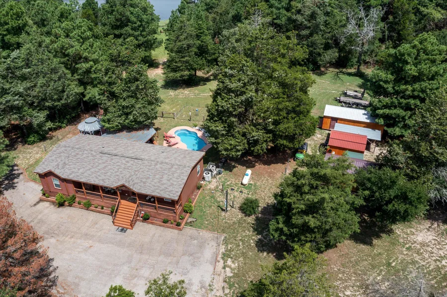 If you're looking for a turn-key estate, then look no further! This 35.278-acre property is a dream retreat for those looking for peaceful, country living. This property would be an ideal spot for a corporation looking for an employee and client retreat as well with its 8.5 miles of manicured trails, fully operational shooting range with automatic skeet and daylight lighting, paintball gear for a little friendly competition, and hunting opportunities. This property comes fully furnished from the furniture and decor to the equipment, and everything in between. The main home boasts three bedrooms and two bathrooms, an open living, kitchen, and dining, and handy laundry. The primary bedroom has a private ensuite bathroom with his and her sinks, soaking tub, and walk-in shower, while two guest bedrooms share a hall bath with shower/tub combo. The covered back patio will be your favorite spot to relax and shoot a game of pool. The inground swimming pool is heated so it can be enjoyed year-round. There is also a lighted gazebo with 8-person table to enjoy your evening BBQs. The bunk house has 4 beds, bathroom, and a kitchenette, as well as internet. You will also find several outbuildings for storage. This property literally has it all! It is completely fenced with an automatic gated entrance for added privacy, paved driveways, and plenty of parking. You will appreciate the security system, satellite internet, satellite tv, and more! The creek on this property is a nice added bonus with a suspension bridge. This property is conveniently located between Palestine and Buffalo, in the quaint community of Oakwood, where you will find local shopping and dining without having to make the drive all the way into town. This property needs to be seen to be truly appreciated. Call today to schedule a private tour.
