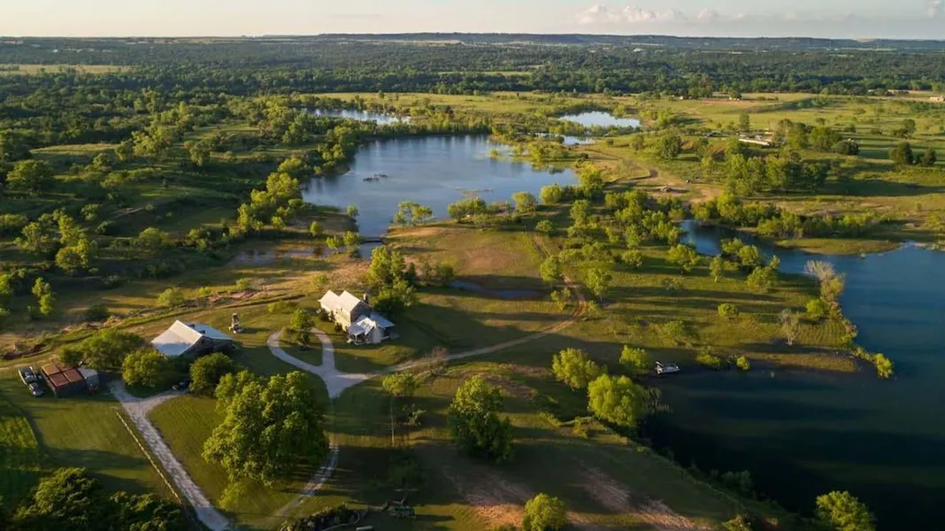 In the highly sought-after northern Bosque County area, the Brazos River Ranch near Brazos Point, Texas is a rare offering. Over 1,000 feet of prime river frontage on the Brazos River, exquisite improvements, manicured roads, 3 private lakes (~8.5, ~7.5 and ~5.5 acres) stocked with fish and an interesting history. Location is 1 hour 15 minutes SW of Dallas, 50 minutes south of Fort Worth, and 25 minutes SW of Cleburne between Lake Granbury and Lake Whitney. The property is approximately 1/2 mile east of Brazos Point, TX fronting on paved County Road 1175. The main headquarters area is manicured and irrigated by a sprinkler system running from the headquarters area and yard along the main entrance to the garden at the main gate. The 2,000 SF, 2 bedroom/ 2.5 bath home includes a 1,000 SF covered porch with views of the two larger lakes and an 1860-era's Tennessee cabin incorporated into the main structure. A 1,680 SF barn sits near the main home and is used for equipment and vehicle storage. It is complete with 800 SF of secondary living quarters including a kitchen, bathroom and second-story guest room with balcony. Towards the river, big hills offer scenic terrain and dramatic views of the Brazos River and hardwood forest with an abundance of deer and turkey (not to mention large numbers of ducks in the fall/ winter months on the lakes). A walking bridge leads to an impressive treehouse overlooking the river perfect for entertaining. This particular stretch of the Brazos River features a gravel/sand bar that lends itself well for recreational camping, hiking, hunting or fishing. Significant furnishings and personal property will convey including a Kubota tractor with implements, appliances and other possible items. Brokers representing Buyers must make initial contact and show up for property tours to participate in the real estate commission. Please visit our website for a full write-up and complete details. $12,562 per acre ($1,795,000).